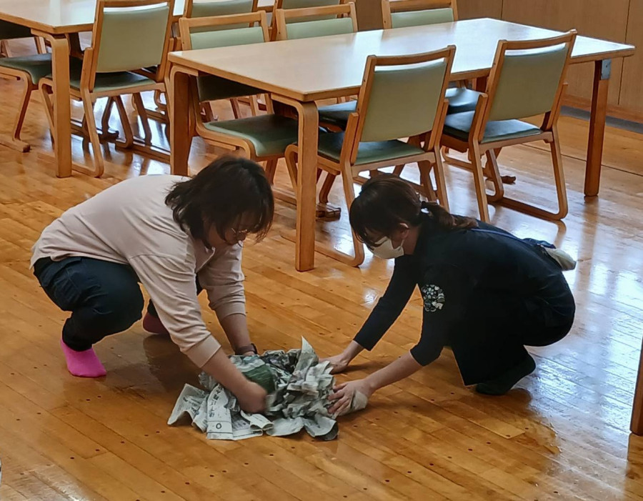 感染症への対策として、『嘔吐物処理研修』を行いました。